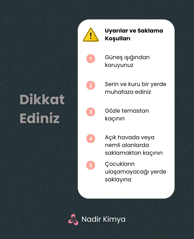| Depolama | Serin, kuru, ışık almayan ortamda saklanmalı |